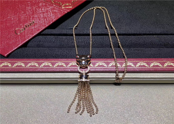 কার্টিয়ার জুয়েলারী 18 কার্ট হলুদ স্বর্ণ প্যান্থের ডি কার্টিয়ার নেকলেস কালো ল্যাক